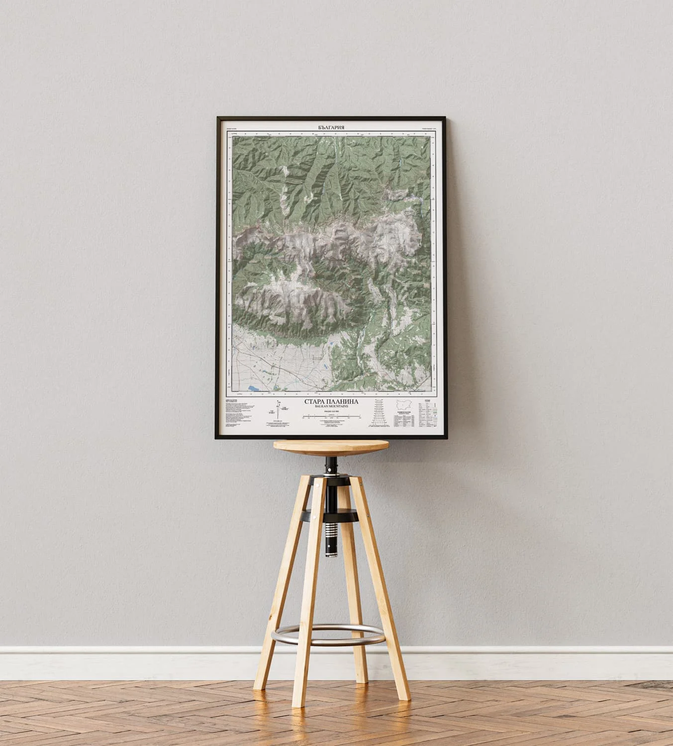 ➡️ Постерът е идеален за декорация или подарък за любителите на планините, дизайнът и картографията.