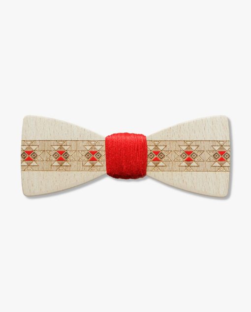 Модерното среща традициите в тази изключително красива и фина дървена папионка. Основен елемент в шевицата е символа Канатица – един от най-старите, познат на човечеството. В българският фолклор е служил за защита от зли сили, както и за изобразяване на основните ни ценности – род, семейство и народ.