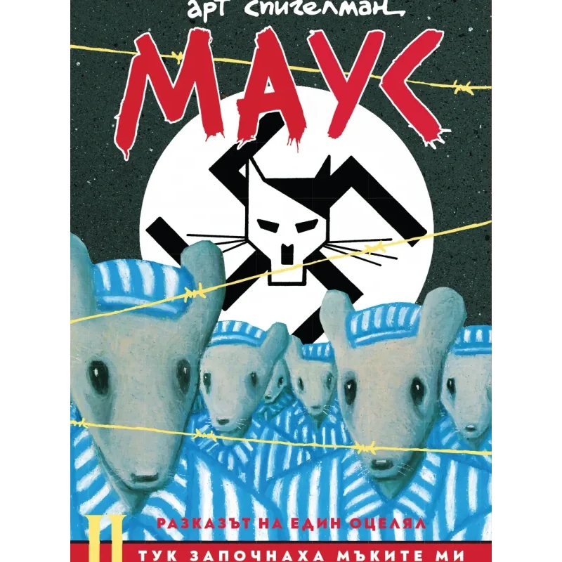 ужасяващото му минало и самата История. Форматът ѝ – този на разказа в картинки (нацистите са котки, евреите – мишки) – успява с удивителна лекота да ни отърси от чувството, че четем за до болка познати събития, и разкрива неизразимото посредством нищожното.