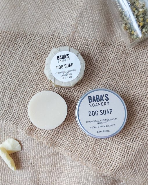 Нежен и подхранващ сапун, изработен от чисти растителни масла и обогатен с масло от нийм, известно със своите антибактериални и антипаразитни свойства. Червената хума нежно почиства козината на твоя четириног приятел в дълбочина, а добавеният извлек от лайка успокоява раздразнимата кожа и спомага за нейната регенерация. Сапунът е деликатен и не дразни силното кучешко обоняние; отмий добре с вода след употреба и се радвай на лъскавата козинка!
