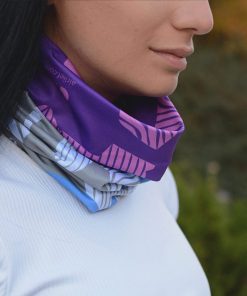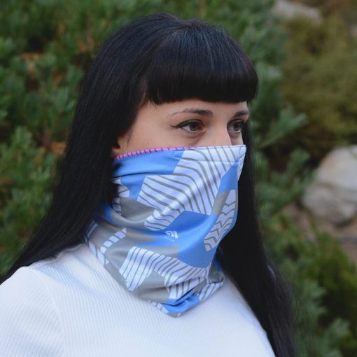 The bandana is double-sided, which allows it to be easily combined with your clothes. The design is inspired by the symmetry and the main color of the model – dark blue and yellow from the night sky. On the other side, you will find symmetry in blue, white, and black.
