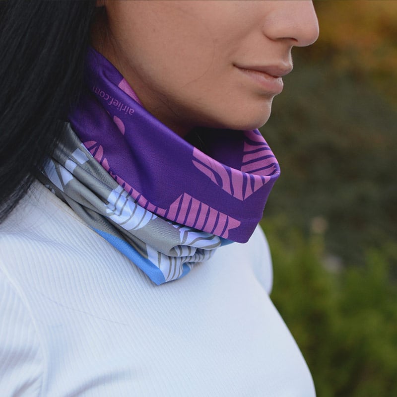 We have created a bandana from breathable fabric, suitable for everyday use. With a built-in nose plate, it creates comfort during prolonged wear.