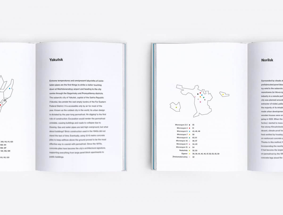 From the Ural Mountains to the Arctic Circle, the book features the extensive microrayons of Siberia’s urban centres, the brutal landscapes of industrial monotowns, cosmic circuses, concrete theatres and opera houses, as well as prefabricated panel blocks, or panelki, erected on permafrost.
