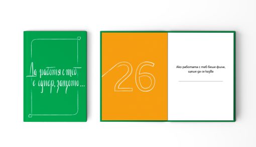 “Working with you is great because..” is a gift book for a beloved colleague, employee or boss. Suitable for both men and women, the book can be filled out by several people – thus becoming a personal gift from the entire team. Make the celebration at work different and emotional. A special gift for a birthday or any other occasion that will be remembered for years.
