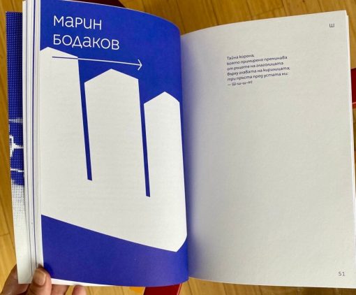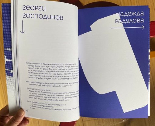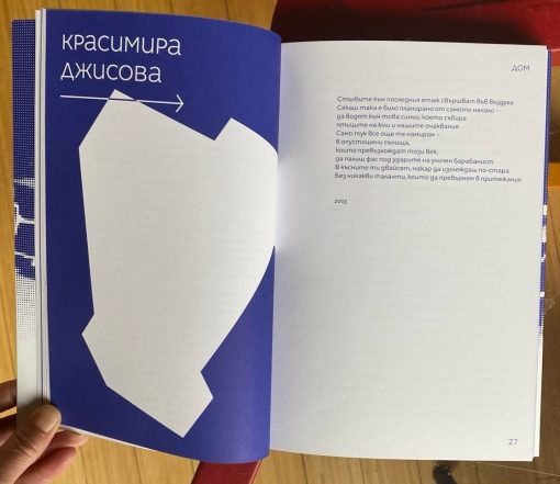 The anthology includes poems by all 14 poets who have been involved in the project since the beginning: Anna Lazarova, Galina Nikolova, Georgi Gospodinov, Ivan Landzhev, Krasimira Dzhisova, Marin Bodakov, Maria Kalinova, Mirela Ivanova, Nadezhda Radulova, Nikola Petrov, Petar Chuhov, Silvia Choleva, Stefan Ivanov and Tsocho Boyadzhiev.