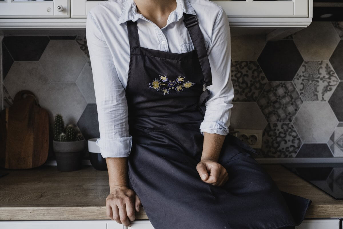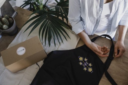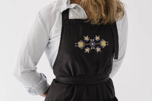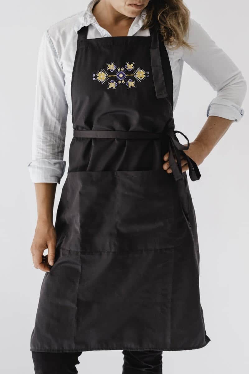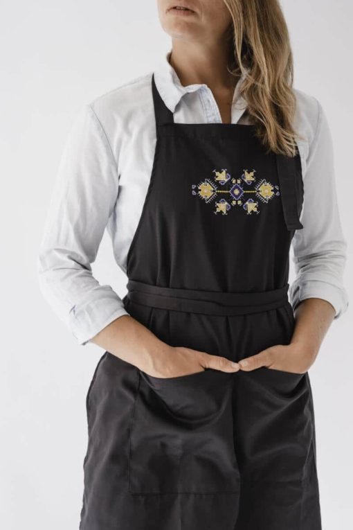 The embroidery on this apron is placed at the chest level: our ancestors believed that this acts as a protection