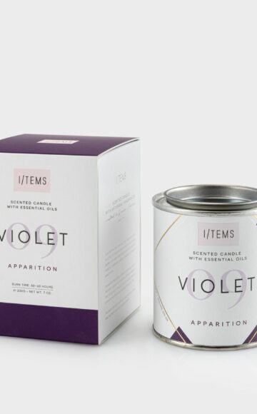 THE SCENT OF SCENTED CANDLE 09 / VIOLET IS INSPIRED BY THE LATIN WORD “APPARITION” GHOST. IT WILL TAKE YOU TO A MAGICAL FOREST, WHERE, LIKE A VISION ON A CLEAR NIGHT, DANCE WILDLIFE WITH HAIR DRESSED IN VIOLET.