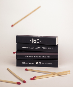 A matchbox with 12 wooden sticks, each 10 cm long, and a lighting strip. It makes it easy to light a candle, even when there is a small amount of wax left at the bottom.