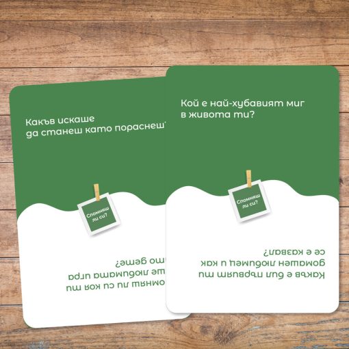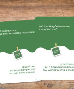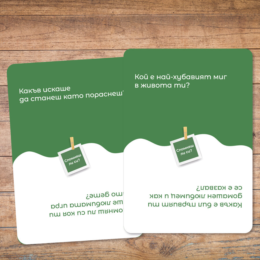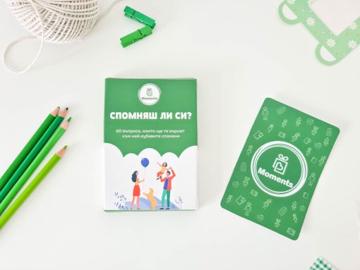 * 30 cards with 60 different questions that will make you remember your first family vacation, your first love, your first big trouble or just learn something new about your loved ones.