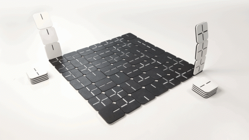 The GEMJI game board is an accessory that helps you build your own games, or assists you with visualizing the setup of the existing games. The board is divided into several sections and can hold a maximum of 70 Gemji tiles in a 7 by 10 grid.
