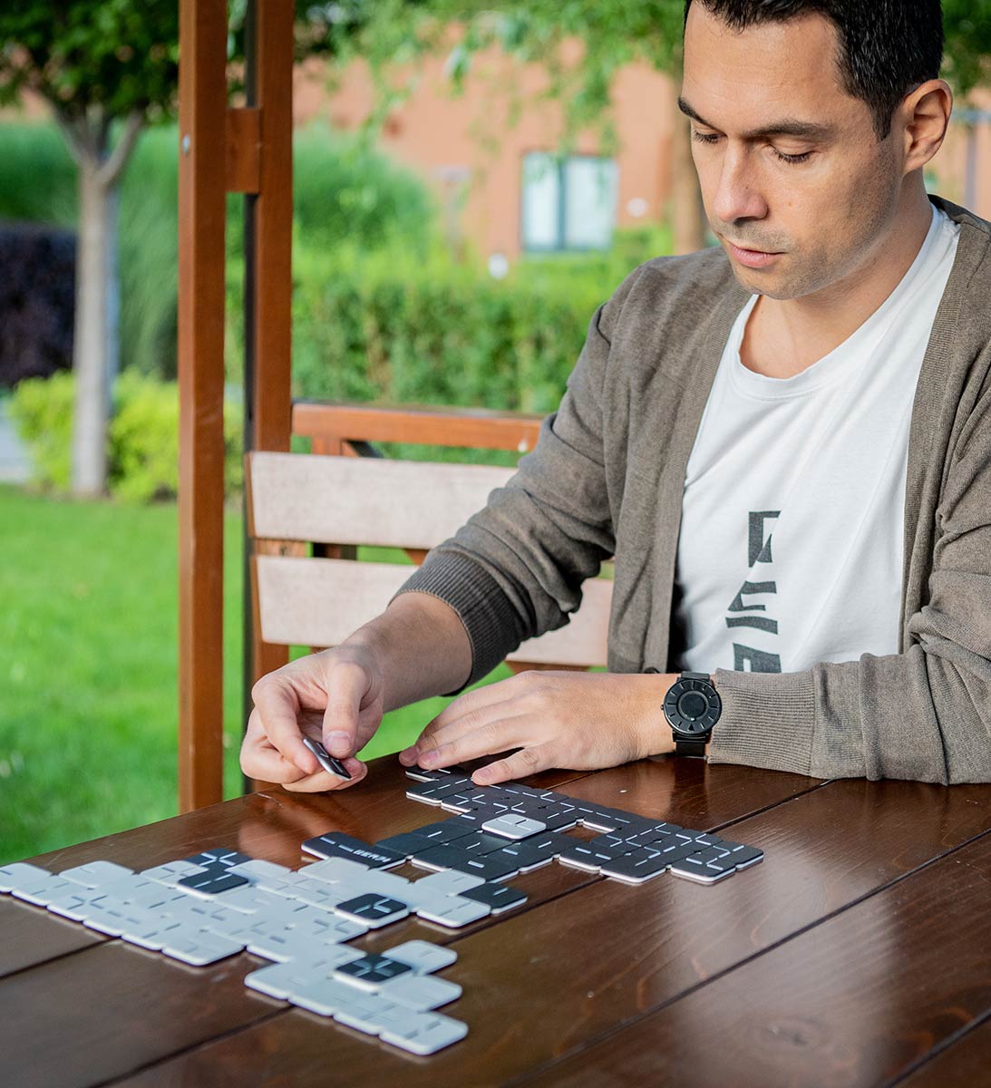 The GEMJI travelling pouch can be used to transport all the tiles in your pocket, as well as to draw out tiles when playing different games.