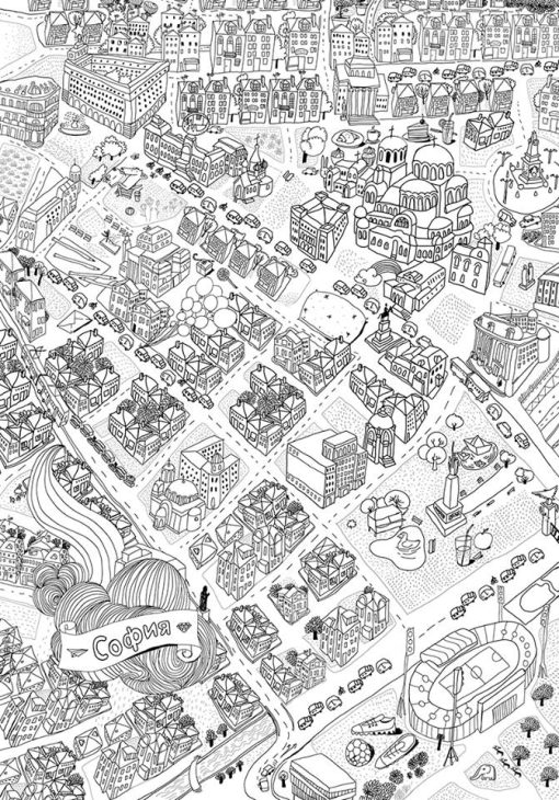 It’s up to you how the black and white “Color Sofia” poster will look when you finish your colorful adventure through it. The city’s landmarks can’t wait to get to know you and your imagination!