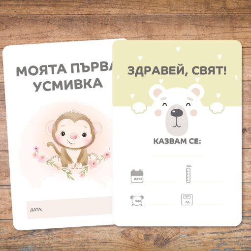 * 1 “Hello, world!” card, on which you can write the date of birth, height and weight of the little treasure;