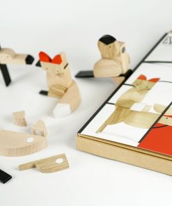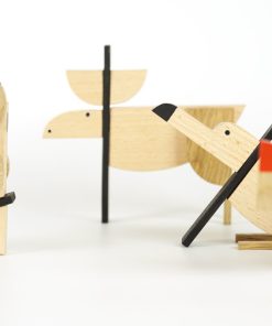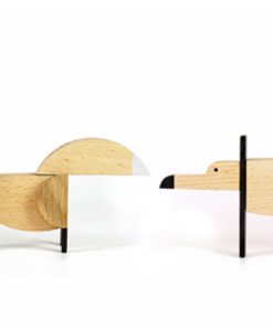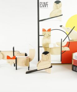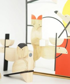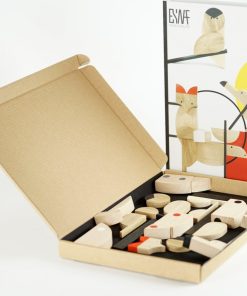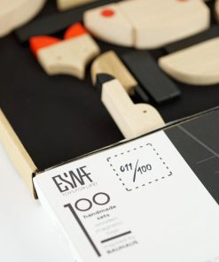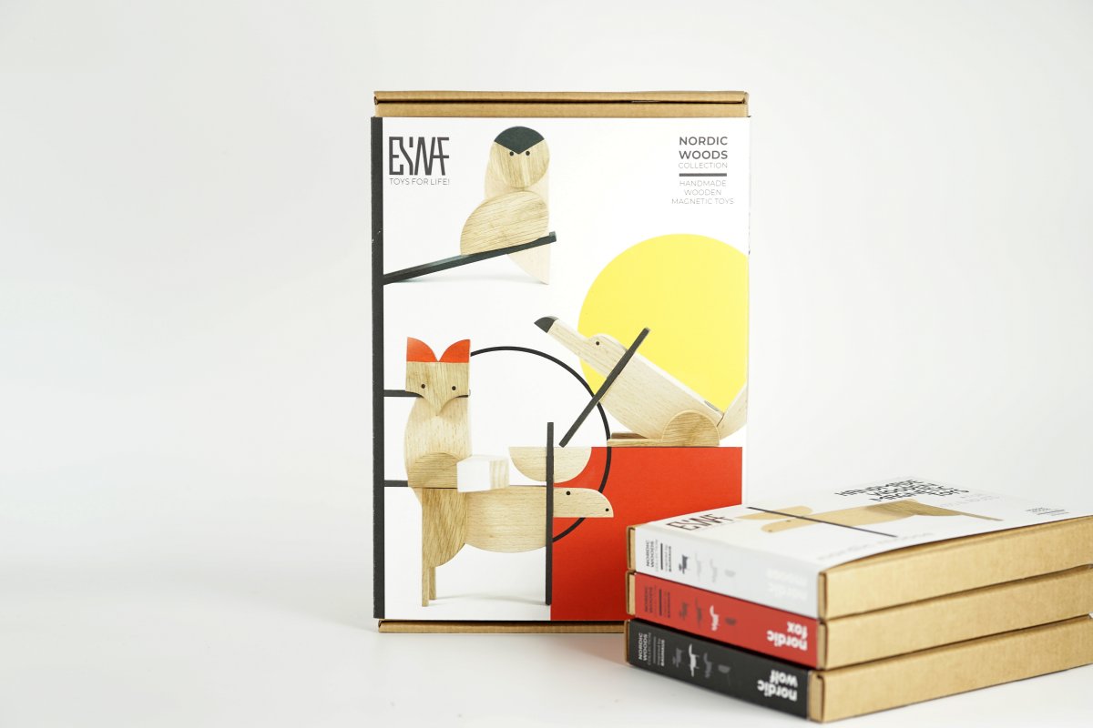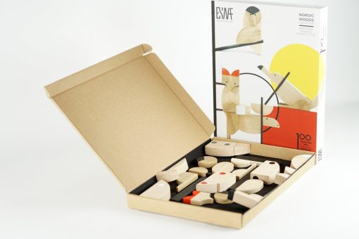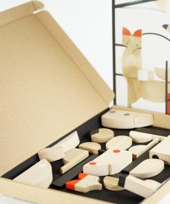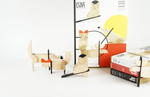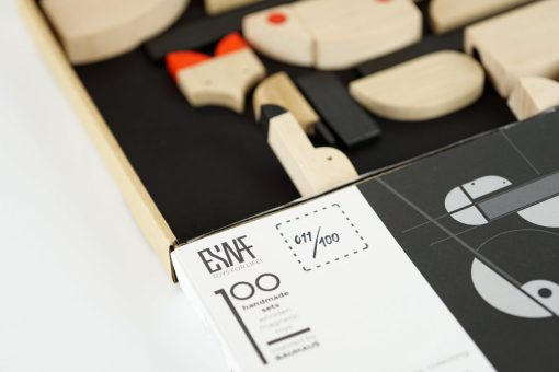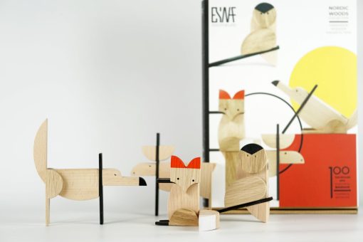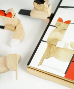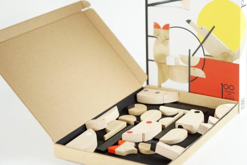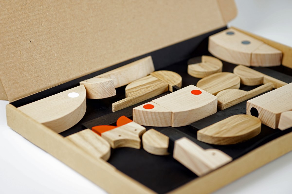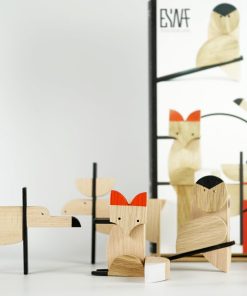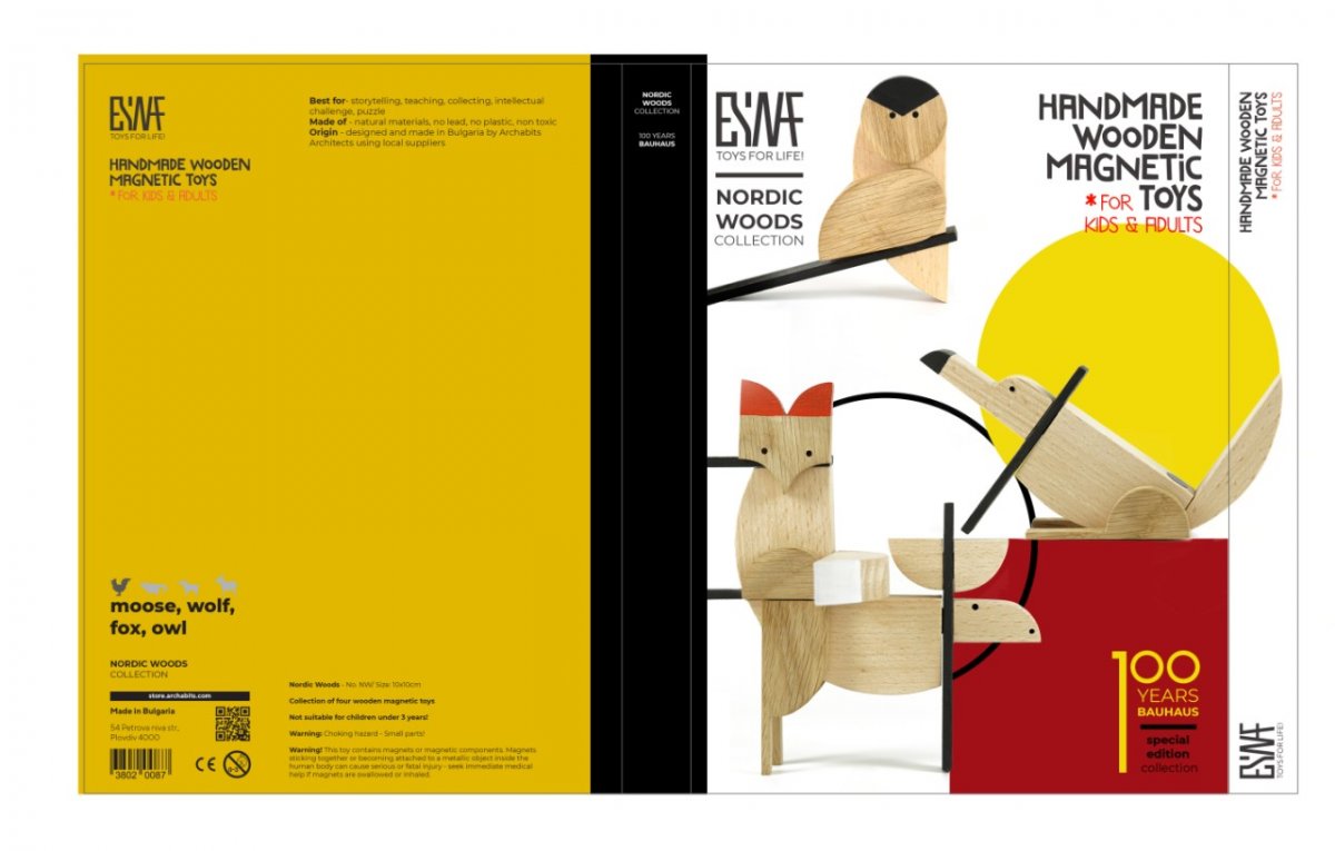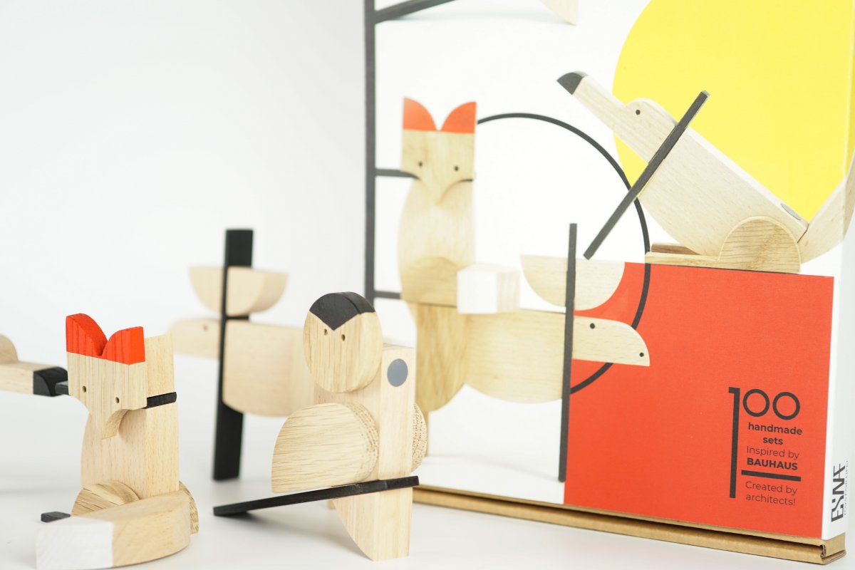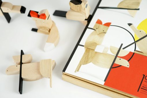 Architecture and toys have always crossed paths in our work. These two themes in our lives have always drawn inspiration from each other. If it weren’t for architecture, the toy project wouldn’t exist. If it weren’t for toys, we would be completely different architects. The battle with lack of time always accompanies our creative desires, so this year we decided to merge these two themes even more tangibly. With our new toy collection, we are paying tribute to one of our favorite architectural movements. The minimalist Nordic woods collection is entirely inspired by the Bauhaus movement. To celebrate its centenary, we have created a series that uses some of its core principles. The Bauhaus movement aimed to unite fine arts and design, creating everyday objects as works of art. Bauhaus is characterized by mass-produced design – simple, rational and accessible to all people. We have used simple geometric shapes, typical materials (beech, oak), the classic colors of this style – black, white and red and textures from our architectural drawings in the illustrations of the northern fox, wolf, moose and owl. To make this project truly special for us, we decided that the first hundred collections would be entirely handmade, numbered with a unique number for each set, and packaged in special packaging in the graphic style of Bauhaus. We will try to produce all subsequent collections by machine, just as the Bauhaus aimed.