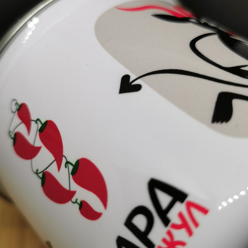 Metal mug with an enameled surface that makes the jug stable and easy to use and clean. A great gift for travelers and adventurers, as well as for lovers of home comfort and delicious drinks. The mug is light and compact, which makes it suitable for camping, hiking, picnics, walks and for everyday use at home. The enamel mugs with designs by “Hedgehog Art & Design” are an ideal alternative to disposable cups and help us to reduce the use of plastic in our daily life.