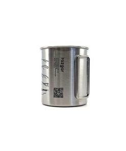 Made of stainless steel, this mug is light, strong and compact due to its folding handles that also help to hang easily.